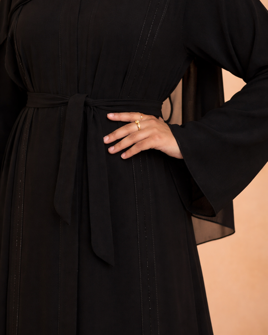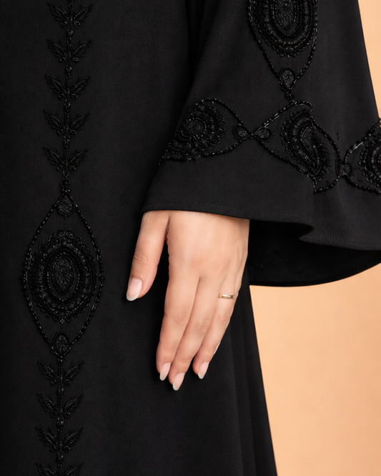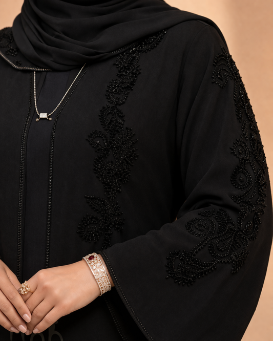 أُوكَازيُونBlack Abaya - Open Pearled