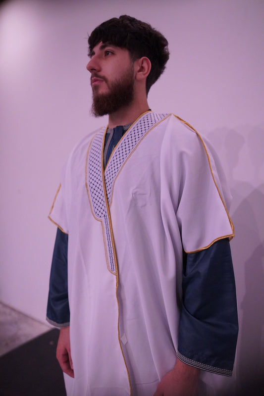 Luxury Moroccan Farwa Coat – Wool & Cotton | Full Zip | Unisex